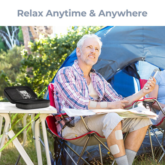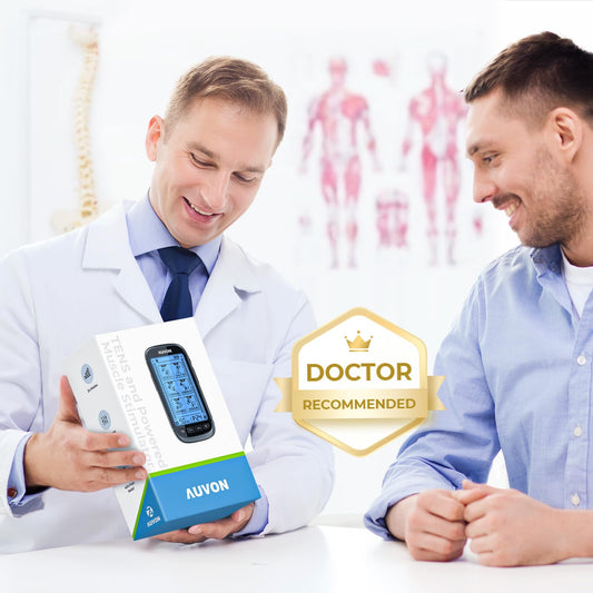 AUVON 3-in-1 TENS Unit Muscle Stimulator, Dual Channel Electronic Pulse Massager, TENS EMS Machine, 24 Modes Muscle Massager for Pain Relief Therapy, EVA Travel Case, 12 Pcs TENS Unit Electrodes Pads