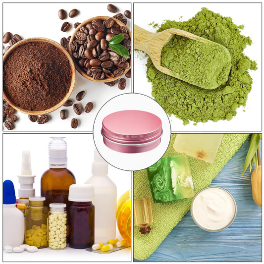 2 oz Metal Round Tins Aluminum Tin Cans Salve Tins Containers with Screw Lid 10 Sheets Stickers for Salve Spice Candies Balms Candles, 36 Pack (Pink)