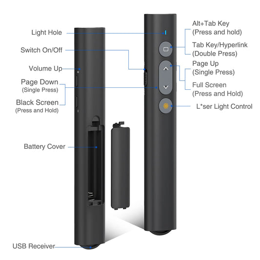 2 in 1 USB Type C Presentation Clicker with Laser Pointer, Wireless Presenter for PowerPoint Presentation PPT Clicker, 2.4GHz Presenter Remote Slide Advancer with Bright Red Laser Pointer