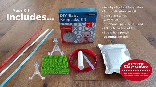 Baby Handprint Footprint Keepsake Ornament Kit (Makes 2) - Bonus Stencil for Personalized Christmas, Newborn, New Mom & Shower Gifts. 2 Easels! Non-Toxic Clay, Air-Dries Light & Soft, Won't Crack.