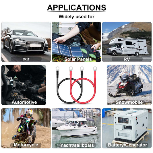 Battery Cable 6AWG 20 Inch Battery Power Inverter Cables Set with 3/8" Lugs Terminals 6Gauge x20in (1 Black & 1 Red) for Car Marine Solar ATV Lawn Mower RV Motorcycle (6AWG, 20-Inch)