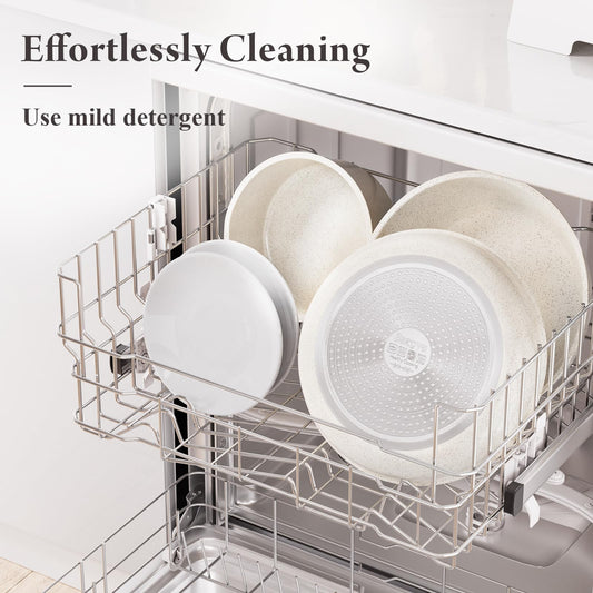 Bazova Ceramic Nonstick Cookware Set, Healthy,Non Toxic,17-Pieces Pots and Pans Set Removable Handles,Induction RV Kitchen Set,Stain & Scratch-resistant,Dishwasher/Oven Safe,PFAS/PFOA Free,Cream White