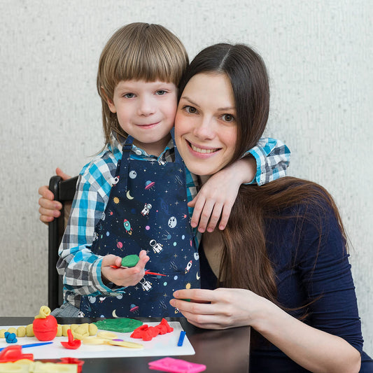 BeeGreen Kids Apron 2 Pack Cooking Aprons with Adjustable Strap Kids Kitchen Aprons with Front Pocket for Girls Toddler Painting Baking Artist Washable Foldable Lightweight (Dinosaurs+Space Planets)