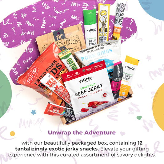 Beef Jerky Gift Basket For Men - Exotic Jerky Variety Pack, Delicious Protein-Packed Snack Box for Dad, Husband - Birthday, Holiday Food Treats for Adults - Unique Food Gifts for Men Who Want Nothing