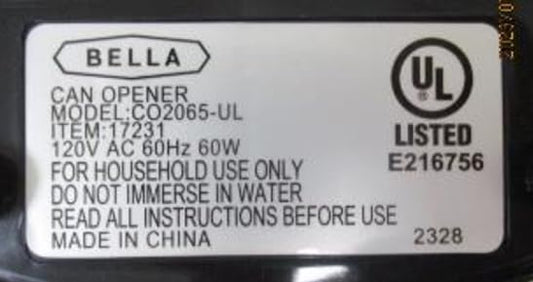 BELLA Electric Can Opener and Knife Sharpener, Multifunctional Jar and Bottle Opener with Removable Cutting Lever and Cord Storage, Stainless Steel Blade, Black