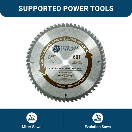 Benchmark Abrasives TCT 8 1/2 Inch Circular Saw Blade, Tungsten Carbide Tipped for Cutting, Plywood, Hardwood, Wood Carving, MDF Panel - Small Circular Saw Wood Cutting Tool - (8-1/2", 60 Tooth)