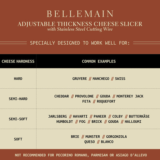 Bellemain Stainless Steel Wire Cheese Slicer - Hand Held Cutter for Cheddar, Gruyere, Raclette, Mozzarella Block, Adjustable Shaver, Thick & Thin Slicer, Curler (Silver)
