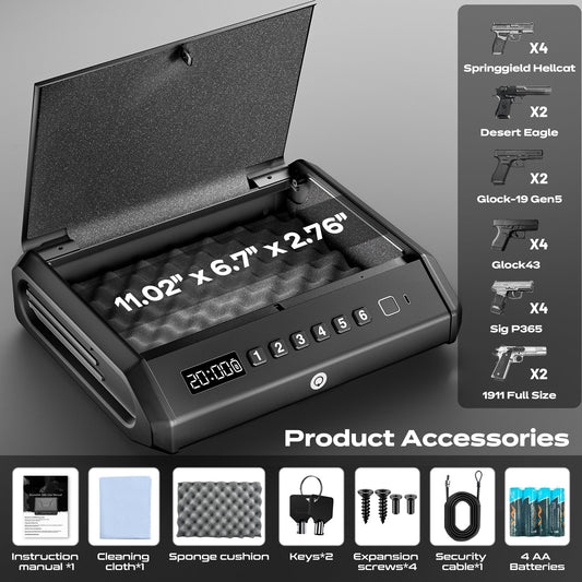 Biometric Gun Safe - 100 Fingerprints, 3-Ways Unlock Large Handgun Lock Box fits 4 Pistols, Silent Mode & Emergency Power for Home Nightstand & Car TOPMEDA