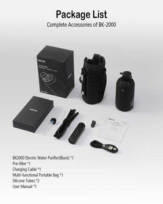 BKLES Water Filter Camping – Electric Portable Water Purifier Survival, 0.01 Micron, 6-Stage Water Filtration System Survival with Emergency Lighting for Hiking, Backpacking, Travel – BK-2000