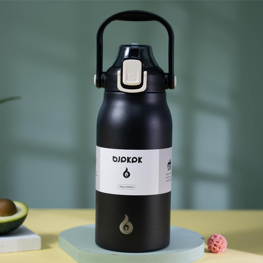 BJPKPK Insulated Water Bottles with Straw, 45 oz Stainless Steel Metal Water Bottle with One-handed Opening Lid, BPA Free Reusable Jugs, Thermo for Gym Sports Outdoors, Black