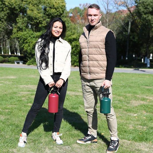 BJPKPK Insulated Water Bottles with Straw Lid, 50oz Large Water Jug, Stainless Steel Vacuum Bottles, Hot & Cold Thermo with 3 Lids and Paracord Handle,Army Green