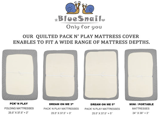 BlueSnail Quilted Waterproof Pack N Play Mattress Fitted Cover for Tollder, Portable Mini Crib Sheet, Comfortable and Breathable Playard Sheet (Light Grey)