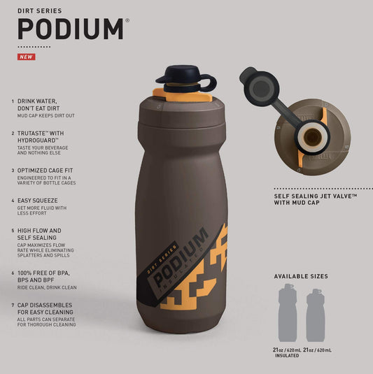 CamelBak Podium Dirt Series Chill Insulated Mountain Bike Squeeze Water Bottle Black, 21oz