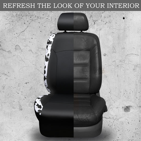 CAR-PASS Cow Print Car Accessories Sets Faux Leather Car Seat Covers & Cow Car Mats & Cow Steering Wheel Cover Seat Belt Pads Universal fit for SUV,Van,Saden,Truck Cute Automobile Interior Sets Women