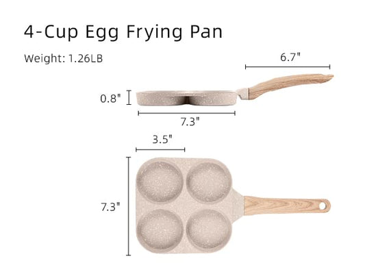 CAROTE Egg Pan Omelette Pan, 4-Cup Nonstick Granite Omelette Skillet - Pancake Pan and Healthy Egg Cooker Suitable for Gas Stove & Induction Cookware