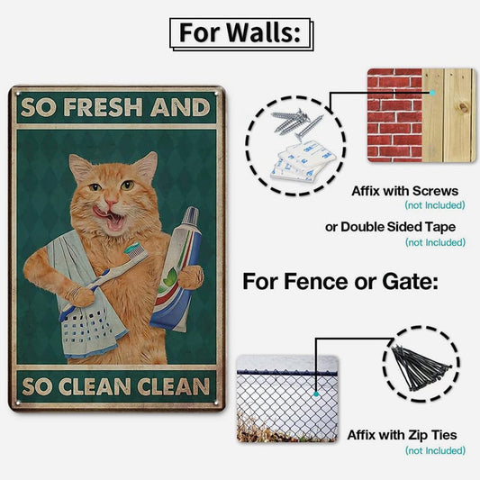 Cat Bathroom Wall Decor Cat Signs Gifts for Cat Lovers, Orange Cat Brushing Teeth And Washing Face Bathroom Decor Weird Stuff, 12x8 Inches Cat Decor Funny Bathroom Signs