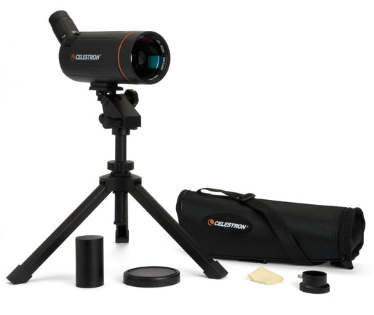 Celestron 52238 Mini Mak 70mm Angled Spotting Scope – Maksutov Spotting Scope – Great for Long Range Viewing – 25–75x Zoom Eyepiece – Multi-Coated Optics – Rubber Armored – Tabletop Tripod Included