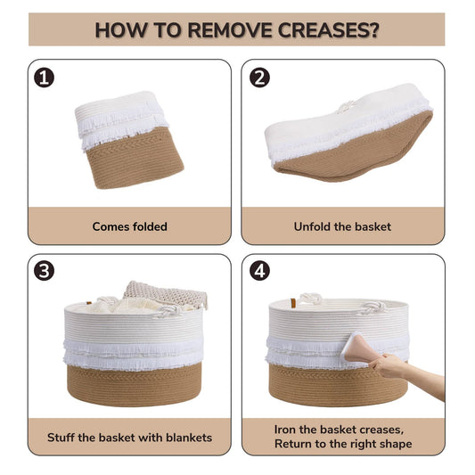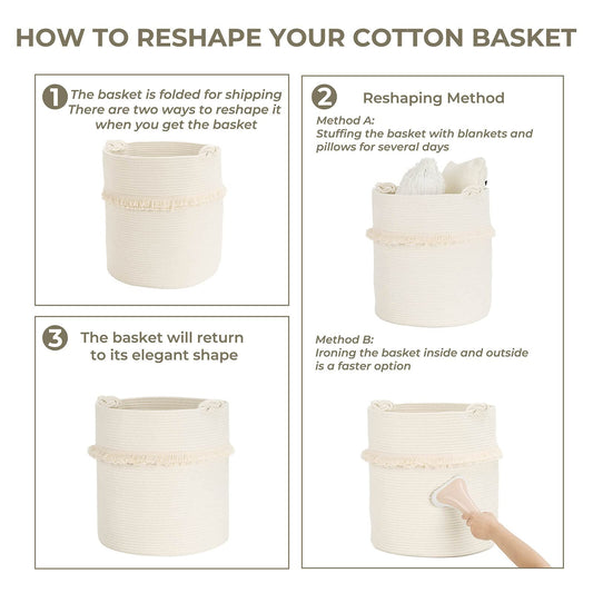 CherryNow Extra Large Woven Storage Baskets – 17'' x 16'' Cotton Rope Decorative Hamper for Magazine, Toys, Blankets, and Laundry, Cute Tassel Nursery Decor - Home Storage Container Off-white