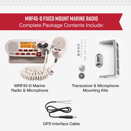 Cobra MR F45-D Fixed Mount VHF Marine Radio – 25 Watt VHF, Submersible, LCD Display, Noise Cancelling Microphone, NOAA Weather Channels, Signal Strength Meter, Scan Channels, White