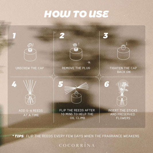 Cocorrína Premium Reed Diffuser Set with Preserved Baby's Breath & Cotton Stick Cashmere Vanilla | 6.7 fl oz Scent Fragrance Oil Diffuser for Bedroom Bathroom Home Décor