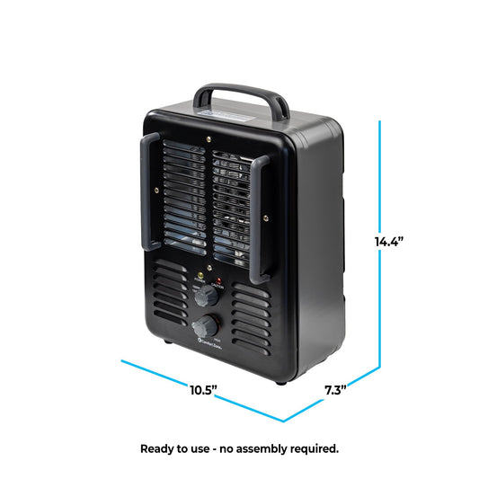 Comfort Zone Electric Portable Milkhouse Style Utility Space Heater with Adjustable Thermostat, Overheat Protection, and Safety Tip-Over Switch, Ideal for Garage or Greenhouse, 1,500W, CZ798BK