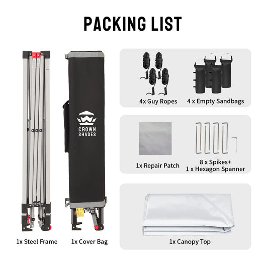 CROWN SHADES 10x10 Pop Up Canopy - Beach Tent with One Push Setup - Easy Outdoor Sun Shade for Events, Parties, Camping - Gazebo with STO-N-Go Cover Bag, Silver Coated Top, Grid White