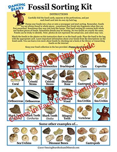 DANCING BEAR Fossil Collection Sorting Activity Kit with Over 100 Pcs (More Than 20 Different Fossil Varieties!), Educational ID Sheet, Color ID Cards, Bags, Magnifying Glass, and Shark Teeth