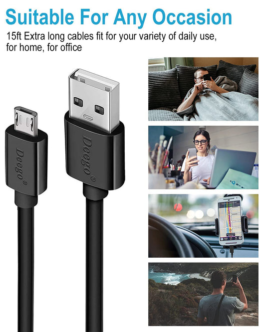 DEEGO Micro USB Cable, 15Ft Extra Long Controller Charger Compatible with PS4, PlayStation 4, Charger Cord Fast Android USB Charging Cable, Black