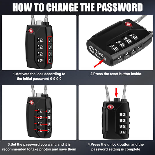 Diyife TSA Luggage Locks, [Upgrade Version][2 Pack] TSA Approved Suitcase Lock 4-Digit Re-settable Combination Lock, Cable Backpack Locks, Code Lock for Travel Suitcase Luggage Bag Lockers (Black)