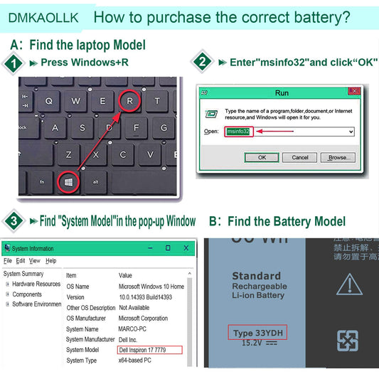 DMKAOLLK 56WH 33YDH Laptop Battery for Dell Inspiron 17 7000 7778 7779 7786 7773 15 7577 G3 3579 3779 G5 5587 G7 7588 Latitude 13 3380 14 3490 15 3590 3580 PVHT1 P30E 81PF3 081PF3 12 Months Warranty