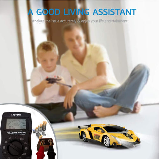 Dlyfull Universal Battery Tester with LCD Display, Small Digital Battery Voltage Resistance Checker for Ni-MH, Ni-CD, Li-ion, Alk & LiFe04 Batteries(AA AAA C D 9V 12V 18650 CR123A 2CR5 CR2032 Cells)