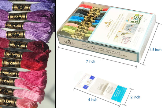 DMC Embroidery Floss Pack, Popular Colors, DMC Embroidery Thread, DMC Floss Kit Include 36 Assorted Color Bundle with DMC Mouline Cotton White/Black and DMC Cross Stitch Hand Needles.