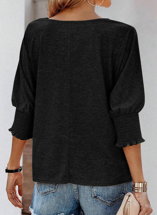 Dokotoo Blouses Womens Summer Tops 2025 Fall Outfits Plus Size Clothes Fashion Top Women's Clothing Trendy Black Short Long Sleeve Shirts for Women Business Casual Teacher 3/4 Length Sleeve Tops