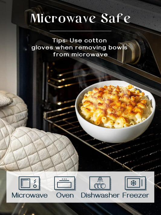 DOWAN 32 OZ Large Soup Bowls Set of 4 - White Ceramic Bowls for Ramen, Cereal, Pasta, Salad, Fruit - Dishwasher & Microwave Safe