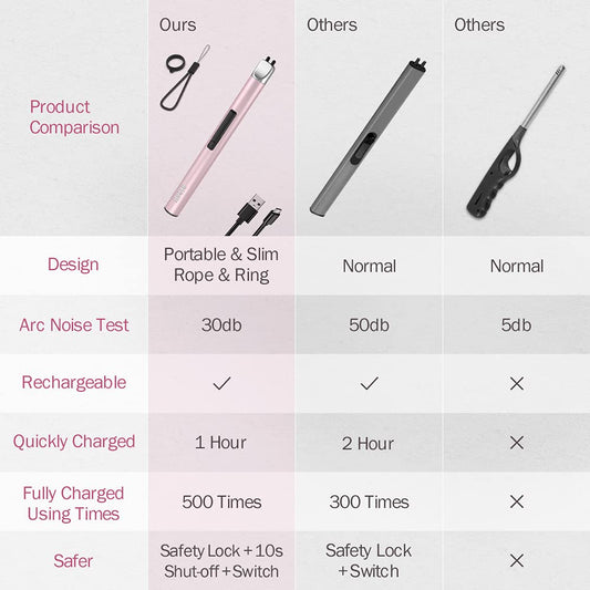 Electric Candle Lighter Plasma Arc Lighters with USB Rechargeable Battery Windproof & Flameless Retractable Head (Rose Gold)