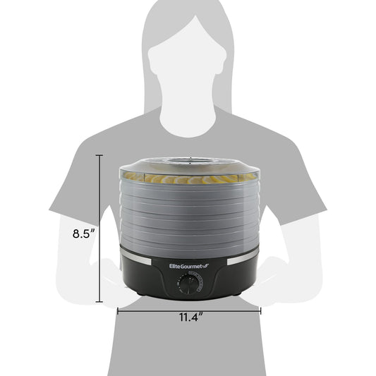 Elite Gourmet EFD319DKG Food Dehydrator, 5 BPA-Free 11.4" Trays Adjustable Temperature Controls, Jerky, Herbs, Fruit, Veggies, Dried Snacks, Black and Grey