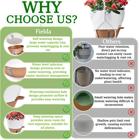 10 Inch Hanging Planters for Indoor Plants & Outdoor - 2 Pack Self-Watering Hanging Pots with Drainage Holes, Visual Reservoir, 2 Hangers - Self-Watering Hanging Baskets Flower Pots
