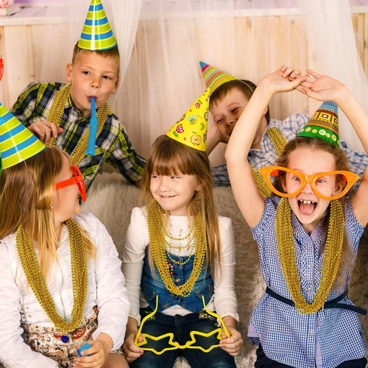 EOBOH 12PCS Mardi Gras Beads, Gold Beaded Necklace Stuff Set, 33" Mardi Gras Christmas Beads Necklace Costume Bulk, Festival Parade Throw Accessory Sets for Mardi Gras St Patricks Day Celebrations