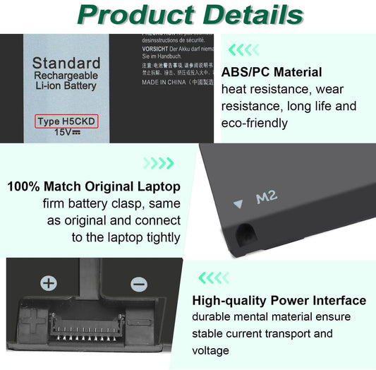 53Wh H5CKD 15V Battery Replacement for Dell Inspiron 5400 5406 7405 7300 7306 7500 7506 2-in-1 Silver 5300 5301 5401 5402 5408 5409 5501 5502 5508 5509 Series Latitude 3410 3510 Vostro 5300 5301 7T8CD