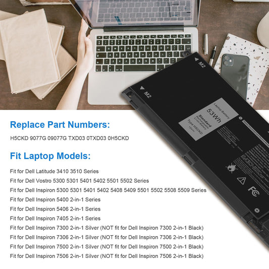 53Wh H5CKD Battery for Dell Vostro 5300 5301 5401 5501 5402 Latitude 3410 3510 Inspiron 5300 5401 5408 5409 5501 5508 5400 5406 5509 7405 7300 7500 2-in-1 Silver Edition 7T8CD TXD03 0H5CKD JK6Y6