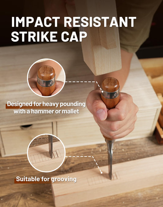 EZARC 6 Pieces Wood Chisel Tool Sets Woodworking Carving Chisel Kit with Premium Wooden Case for Carpenter Craftsman