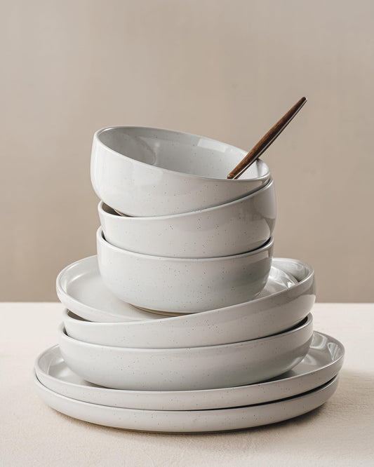 Famiware Milkyway Plates and Bowls Set, 12 Pieces Dinnerware Sets, Dishes Set for 4, White