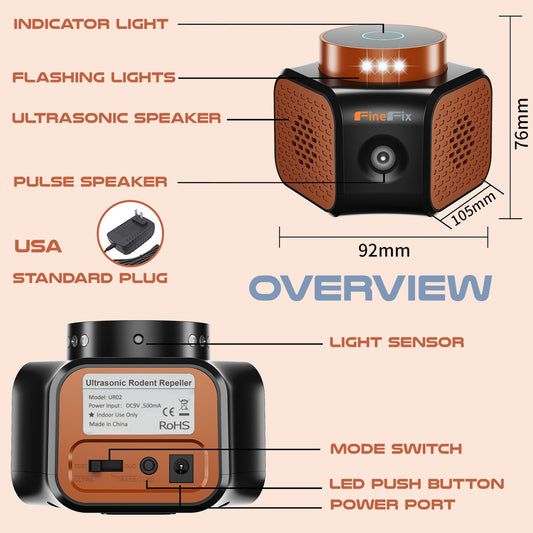FineFix 360 Plug in Mouse Deterrent Ultrasonic Pest Repeller 4-Modes Best Thing to get rid of mice Repellent Indoor Mouseblocker for House Attic Garage Warehouse Rvs repelente ultrasonico de plagas