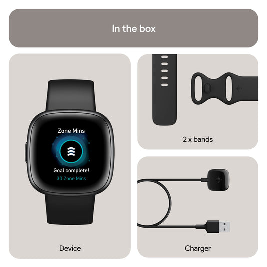 Fitbit Versa 4 Fitness Smartwatch with Daily Readiness, GPS, 24/7 Heart Rate, 40+ Exercise Modes, Sleep Tracking and more, Black/Graphite, One Size (S & L Bands Included)