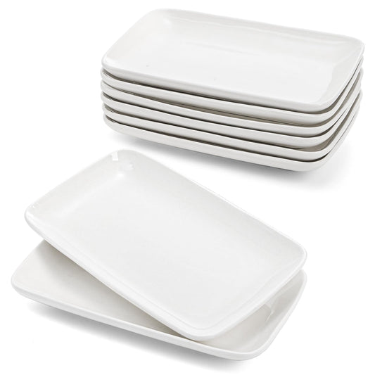 Foraineam 8 Pieces Rectangular Plates 8 Inch Porcelain Platters, Dessert, Appetizer, Salad Plates White Serving Trays