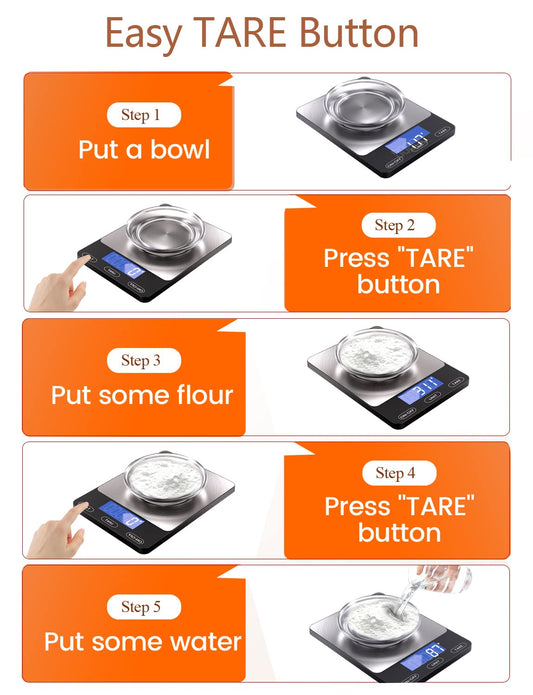 Food Scale, 11lb Kitchen Scale with 6 Units Tare Function & LCD Display, 0.05oz/1g Stainless Steel Digital Food Scale Grams and Ounces for Baking, Cooking, Dieting and Meal Prep (Batteries Included)