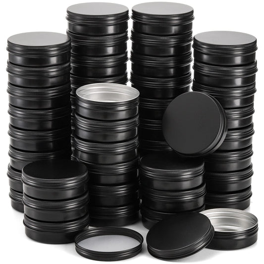 Foraineam 60 Pack 2 oz Round Lip Balm Tin Cans Cosmetic Sample Containers with Screw Lid - Aluminum Empty Tins for Salve, Powder, Spice, or Candies