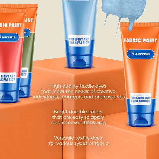7 Artists Sky Blue Fabric Paint 2 fl. oz – Light Blue Fabric Paint for Clothes Permanent | Textile Paint for Upholstery, Sneakers, Canvas Tote Bags, T-Shirt Painting | Pintura para Ropa y Zapatos