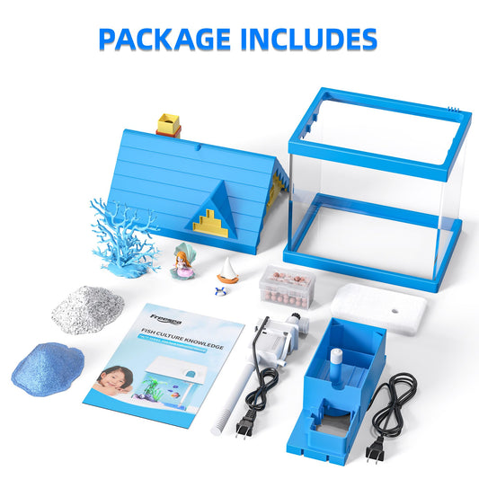FREESEA Aquarium Betta Fish Tank: 2 Gallon Glass Betta Tank with Filter and Light for Shrimp Jellyfish Goldfish - Small Aquarium Starter Kit for Home Office Room Decorative Desktop Kids Gifts