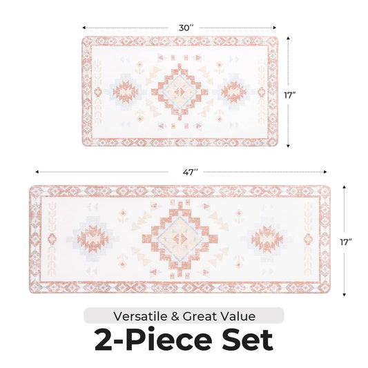 FRESHMINT Anti Fatigue Kitchen Mats for Floor 2 Piece Set, Waterproof & Non-Skid Boho Kitchen Rugs, Cushioned Kitchen Mat for Standing Washable Comfort Desk Kitchen Runners, 17x30+17x47